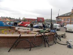 У довершення благоустрою площі, де вже проведено поточні ремонти бортиків клумб, зроблено інші необхідні оновлення, а також висаджено багато красивих зелених насаджень – хвойних та листяних декоративних кущів, працівники ПП «Елтех» встановлюють паркові опори освітлення, що передбачає підготовчі роботи, монтаж та встановлення освітлювальних приладів.