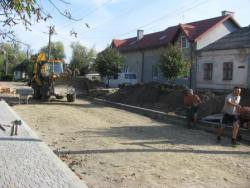 Добрими темпами йдуть роботи по капітальному ремонту вул.Валової в Городку. На сьогодні працівники фірми-підрядника ТОВ «Будівельна компанія «Сантехбуд» вже практично завершують підготовчі роботи на одній полосі проїжджої частини та вже відремонтували частину тротуару (замостили бруківкою).