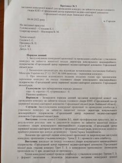 Протокол засідання конкурсної комісії для проведення конкурсу на зайняття посади головного лікаря КНП "Городоцький центр первинної медико-санітарної допомоги" Городоцької міської ради Львівської області