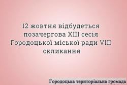 Сьогодні, 12 жовтня, в актовій залі Городоцької міської ради відбулась позачергова ХІІІ сесія Городоцької міської ради восьмого скликання.