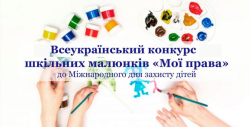 Оголошується традиційний XVІ Всеукраїнський конкурс шкільних малюнків до нагоди Міжнародного дня захисту дітей. Цьогоріч він пройде під гаслом «МОЇ ПРАВА: разом до перемоги» .
