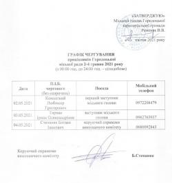Графік чергування працівників Городоцької міської ради 2-4 травня 2021 року