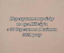 У зв’язку з ремонтом ділянки каналізації по вул. Підгір’я буде перекрито проїзд по вул. Підгір’я від перехрестя Українська-Підгір’я до вул. Шевченка з 30 березня по 1 квітня 2021 року.