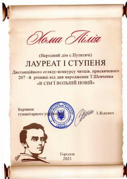 У зв’язку з обмеженнями, пов’язаними з пандемією коронавірусу та відповідно через це певною специфікою діяльності культурних та освітніх закладів, цього року у Городку огляд-конкурс читців поезії Тараса Григоровича Шевченка вперше пройшов дистанційно, у так званому форматі «он-лайн». Участь в дистанційному огляді-конкурсі декламування поезій, присвяченому 207-й річниці з дня народження Великого Кобзаря, взяли представники гуртків художнього читання Народних домів населених пунктів Городоччини. Переможців та призерів визначало журі у складі директора Народного дому м. Городка Мирослави Кутної, режисера Народного дому м. Городка Галини Глушко, головного спеціаліста гуманітарного управління Городоцької міської ради Мирослави Степаняк, керівника народного драматичного колективу Народного дому м.