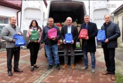 привезли до Городка 215 укомплектованих ранців для школярів, а ще – 2 генератори, ковдри, взуття, одяг для соціально вразливих категорій населення.