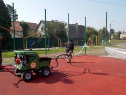 Спеціалісти ТзОВ «Компанія «Спорт-ІН» сьогодні наносять останній шар фарби на наливному покритті нового спортивного майданчика, що на центральному стадіоні у Городку, вул.Т.Шевченка. Залишається лише нанести розмітку, і покриття на майданчику площею 800 кв.м - готове. Також Городоцька міська рада планує належно обгородити майданчик: від людських осель – щільними металевими листами та сіткою – з інших сторін, а також облаштувати сучасне якісне освітлення на металевих опорах. Покриття на майданчику має певні умови для його експлуатації, зокрема, заняття у взутті, що не травмуватиме поліуретанову поверхню. Про це будуть повідомляти спеціальні інформаційні щити. Нагадаємо: на реалізацію об'єкту витрачено 1,5 млн грн, в тому числі півмільйона - з обласного бюджету.