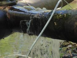 Сьогодні вранці наші комунальники із КП «Городоцьке водопровідно-каналізаційне господарство» були ошелешені побаченим: на вул.Львівській вандали пошкодили каналізаційну трубу (сталеву, діаметром 250 см), що пролягає над Верещицею!
