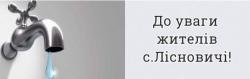 У зв'язку з аварійно-відновлювальними роботами, у с.Лісновичі буде відсутнє водопостачання орієнтовно до 17:00 год.