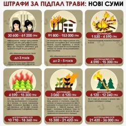 Вкотре нагадуємо, що спалювання сухої рослинності та сміття карається законом у вигляді штрафу: