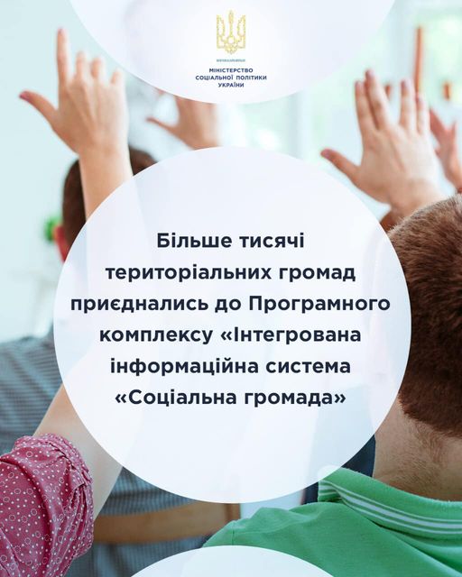 Більше тисячі територіальних громад приєднались до Програмного комплексу „Інтегрована інформаційна система „Соціальна громада”. Одне з головних завдань удосконалення системи соціального захисту в умовах децентралізації – забезпечити кожній людині безперешкодний доступ до соціальної підтримки, адміністративних послуг соціального характеру за місцем свого проживання. Тепер саме у громаді приймаються заяви та документи для призначення соціальної допомоги. Марина Лазебна, Міністр соціальної політики: «На сьогодні ми маємо близько 40 працюючих державних соціальних програм, які включають 67 видів державної соціальної допомоги. У громадах проживає понад 7 мільйонів сімей, які можуть звертатись за тією чи іншою допомогою. Звичайно, самотужки громадам опанувати такий обсяг процесів, а тим більше автоматизувати їх, забезпечити ефективну взаємодію з органами соціального захисту населення та Національною соціальною сервісною службою, важко. Тому для того, щоб забезпечити безперервність соціального захисту людей, Мінсоцполітики надає допомогу громадам в організації всіх процесів соціального захисту та впровадженні електронних сервісів. Зокрема, допомагаємо громадам впровадити програмний комплекс «Інтегрована інформаційна система «Соціальна громада». Програмний комплекс «Інтегрована інформаційна система «Соціальна громада» забезпечує прийом заяв та документів від громадян на призначення соціальних допомог, житлових субсидій, пільг за місцем їх проживання та передачу їх в електронному вигляді органам соціального захисту населення, що суттєво спрощує і пришвидшує обмін та опрацювання інформації, забезпечує зручність для мешканців територіальних громад, особливо віддалених від органів соціального захисту населення. Вже більше тисячі територіальних громад приєднались до Програмного комплексу та мають можливість надавати соціальну підтримку своїм мешканцям із застосуванням електронних сервісів. Територіальні громади можуть подати електронну заявку для приєднання до Програмного комплексу за посиланням: https://socgromada.ioc.gov.ua
