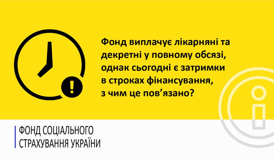 Фонд соціального страхування України виплачує лікарняні та декретні у повному обсязі. Ми робимо все можливе, аби ви отримали допомогу якнайшвидше, однак сьогодні є затримки в строках фінансування.
