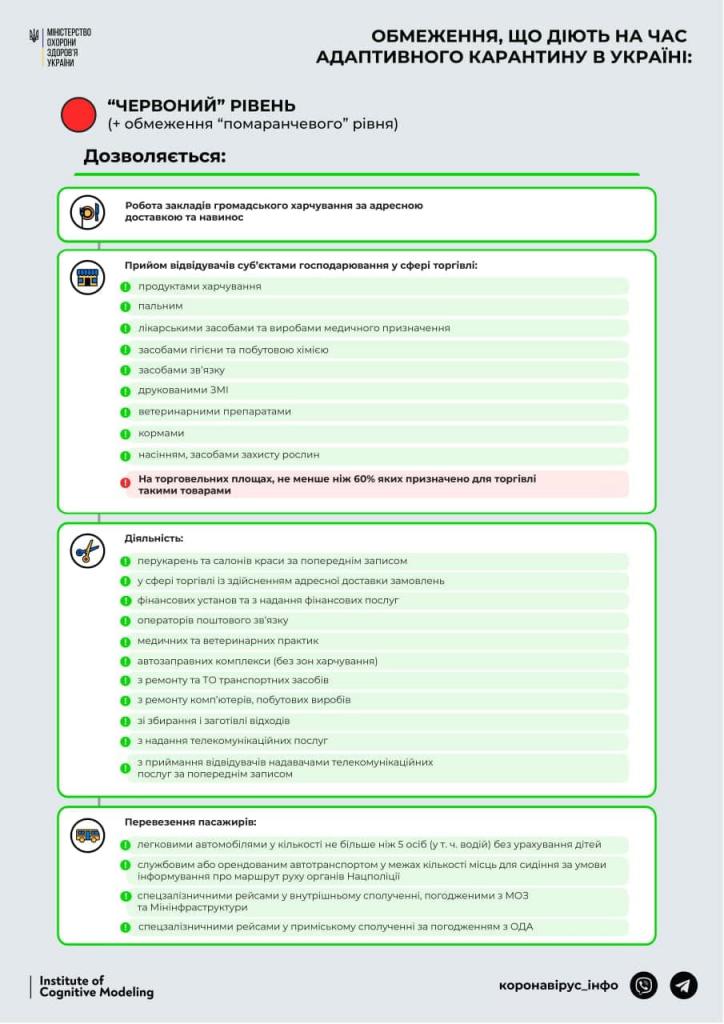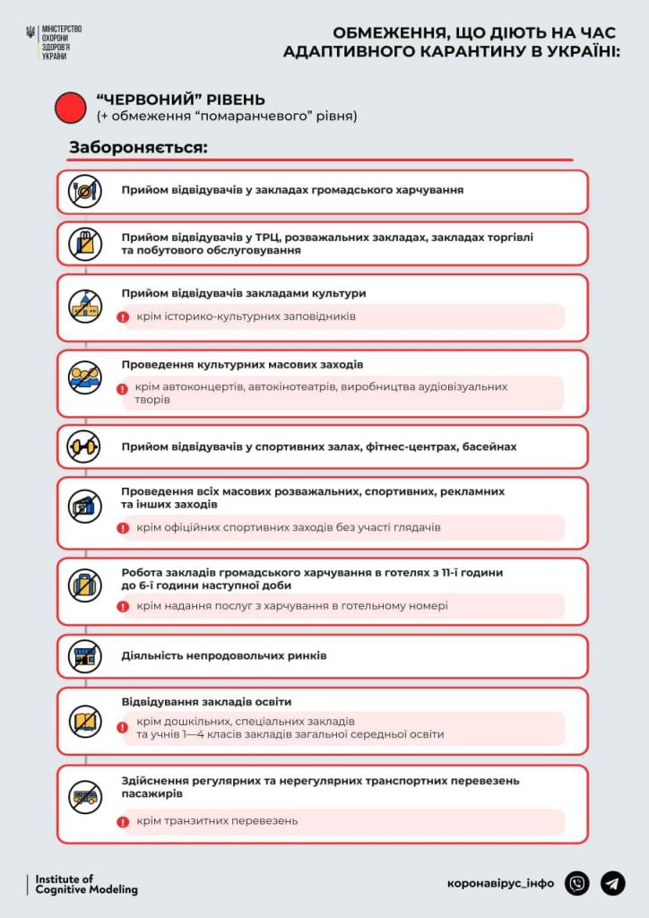 У МОЗ внесли зміни до постанови від 22 березня 2021 р. № 230 «Про внесення змін до постанови Кабінету Міністрів України від 9 грудня 2020 р. № 1236», якими визначили конкретний перелік місць обов’язкового носіння масок у регіонах «червоної зони» епіднебезпеки. Так, згідно з цими змінами, масковий режим не передбачений у парках і скверах, як це помилково зазначили у своїх новинах деякі ЗМІ. Водночас носіння масок є обов’язковим у закладах охорони здоров’я та освіти, підземних переходах, зупинках громадського транспорту та інших територіях загального користування за неможливості дотримання фізичної дистанції не менше як 1 метра. Нагадаємо, тією ж постановою від 22 березня уряд змінив правила перетину кордону – відтепер іноземці та особи без громадянства при в’їзді в Україну повинні мати при собі негативний ПЛР-тест, зроблений не більш як за 72 години до перетину кордону. Для громадян України, які перетинають державний кордон, умовою, яка звільняє їх від самоізоляції та обсервації, є також наявність негативного ПЛР-тесту, проведеного не більш як за 48 годин до перетину кордону.