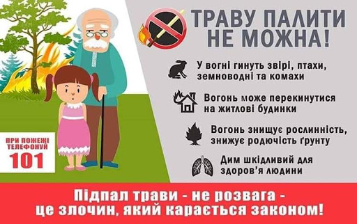 Недотримання правил пожежної безпеки та необережне поводження з вогнем, зокрема навмисне підпалювання сухої трави у більшості випадків призводить до загоряння торфовищ, лісової підстілки, лісу та сміттєзвалищ, що може призвести до масштабних пожеж, які становитимуть загрозу не лише довкіллю, житловим будинкам та інфраструктурі, але й життю і здоров’ю людей, особливо тим, хто має серцеві та алергічні захворювання і проблеми з дихальними шляхами.