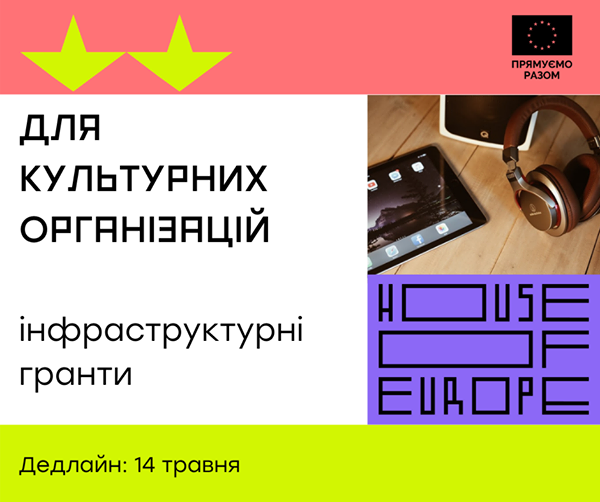 Грантова програма ЄС House of Europe надасть культурним організаціям з регіонів від 4500 до 9000 євро (залежно від розміру населеного пункту чи громади) на покупку вартісних гаджетів.