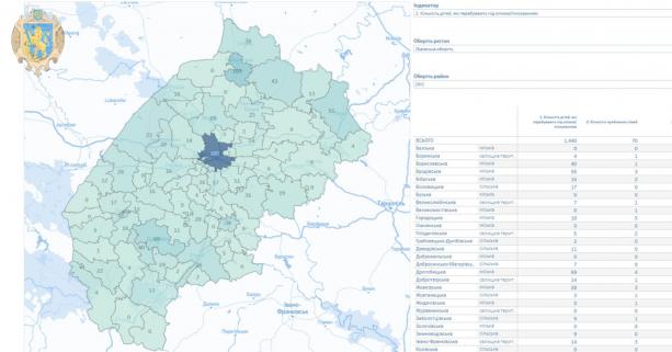 Візуалізовані дані (https://www.msp.gov.ua/content/rozvitok-simeynih-form-vihovannya.html) доступні як на узагальненому загальнодержавному рівні, так і на регіональному, районному рівнях та по кожній територіальній громаді.