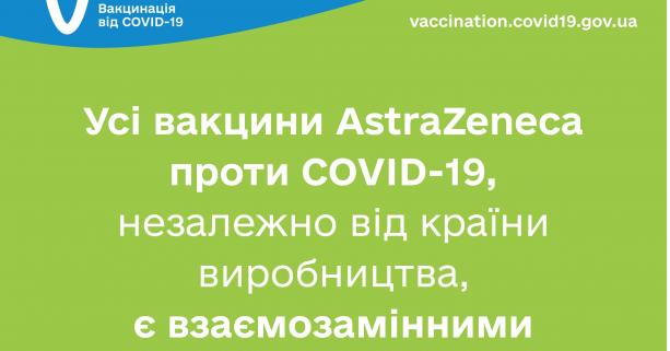 Вакцина AstraZeneca (AZD1222) виробництва Інституту сироватки крові Індії (Covishield) та вакцина, виготовлена південнокорейською компанією "SK Bioscience Co Ltd. (AstraZeneca-SKBio)", є ідентичними за складом та технологіями виготовлення, не розглядаються як різні вакцини та є взаємозамінними, пояснили в НТГЕІ.