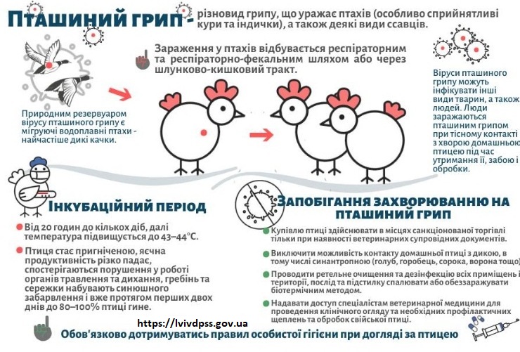 З метою охорони господарств від занесення збудника грипу птиці керівники та спеціалісти птахогосподарств, незалежно від форм власності, зобов’язані суворо виконувати заходи, які передбачені Інструкцією з профілактики та ліквідації грипу птиці, затвердженої Наказом Міністерства аграрної політики та продовольства України 17.10.2011р. № 547 і зареєстрованою в Міністерстві юстиції України 8.11.2011 р. за №1277/20015, забезпечувати виконання наказу Головного державного інспектора ветеринарної медицини України № 148 від 30.11.2007 р. «Про недопущення виникнення високопатогенного грипу птиці».