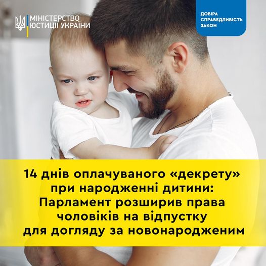 Українські чоловіки матимуть змогу оформити відпустку при народженні дитини до 14 календарних днів за рахунок роботодавця. Відповідний Закон ухвалила Верховна Рада.