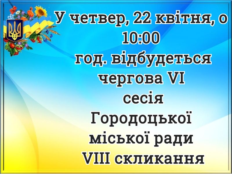 У четвер, 22 квітня, відбудеться чергова VІ сесія Городоцької міської ради VIII скликання.