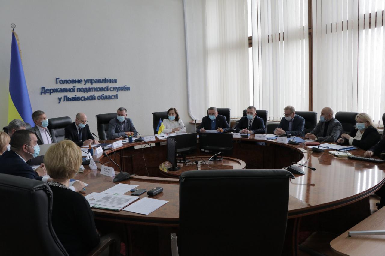 Головне управління ДПС у Львівській області та представники територіальних громад: Городоцький міський голова Володимир Ременяк, Новояворівський міський голова Володимир Мацелюх, Мостиський міський голова Мирослава Пельц, Славський селищний голова Володимир Бега, Трускавецький міський голова Андрій Кульчицький та Червоноградський міський голова Андрій Залівський підписали Меморандум щодо налагодження ефективної співпраці з метою вирішення проблемних питань оподаткування, пошуку додаткових резервів, зменшення заборгованості та забезпечення надходжень до місцевих бюджетів.