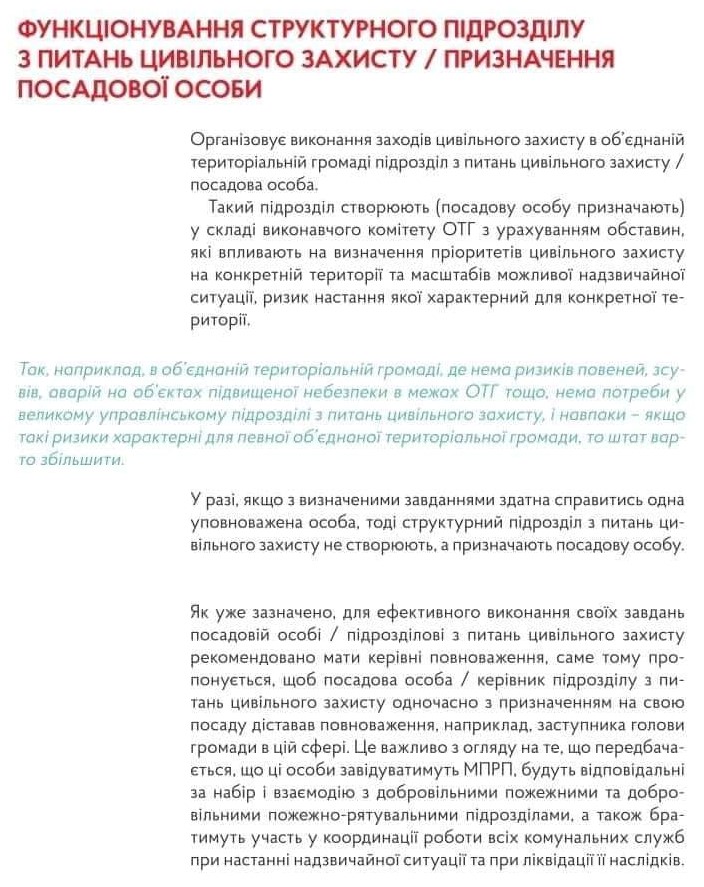 Функціонування структурного підрозділу з питань цивільного захисту/ призначення посадової особи