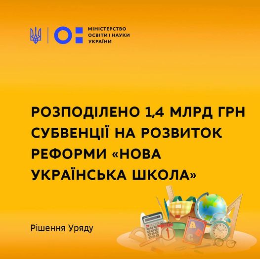 Уряд розподілив 1 млрд 421 млн 334,9 тис. грн субвенції місцевим бюджетам на забезпечення якісної, сучасної та доступної загальної середньої освіти «Нова українська школа» у 2021 році. Відповідне рішення сьогодні, 17 травня 2021 року, ухвалив Кабінет Міністрів України.