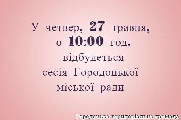 У четвер, 27 травня, відбудеться чергова VІІ сесія Городоцької міської ради VIII скликання.