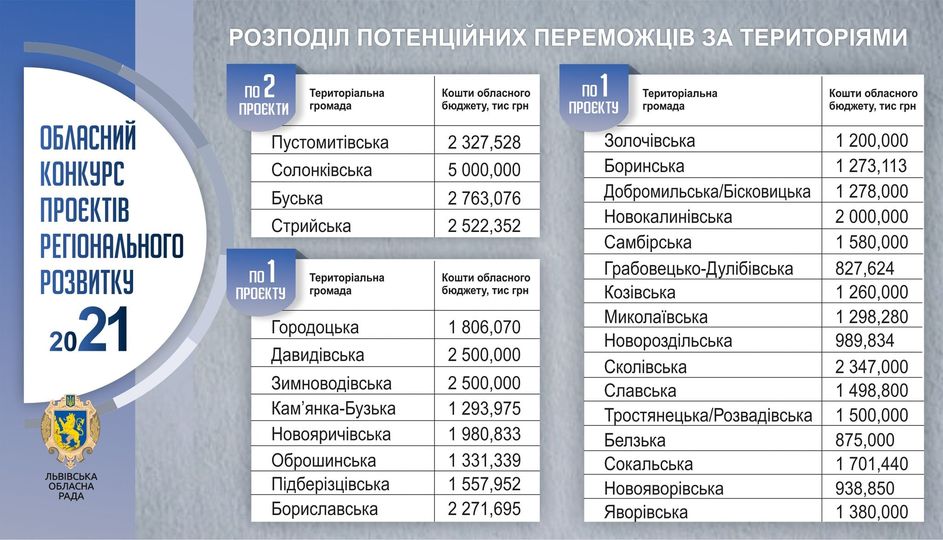потенційних переможці конкурсу проєктів регіонального розвитку на 2021 рік.