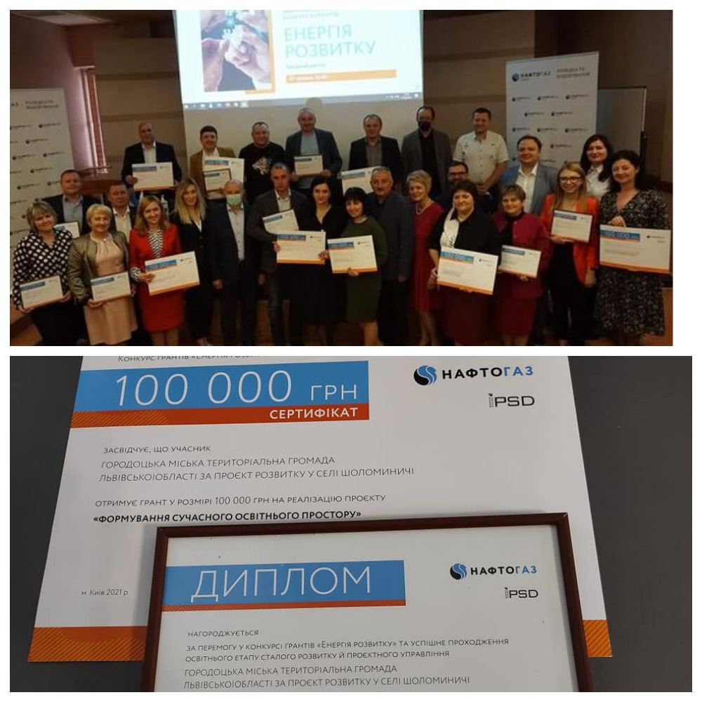 Проєкт Городоцької міської ради "Формування сучасного освітнього простору у селі Шоломиничі" став одним з переможців у конкурсі грантів "Енергія розвитку", який проводився за підтримки Група Нафтогаз.