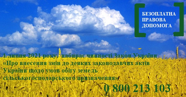 1 липня 2021 року, набирає чинності Закон України «Про внесення змін до деяких законодавчих актів України щодо умов обігу земель сільськогосподарського призначення», який має відкрити ринок землі та дозволити громадянам вільно купувати та продавати землі сільськогосподарського призначення які належать їм на праві приватної власності.