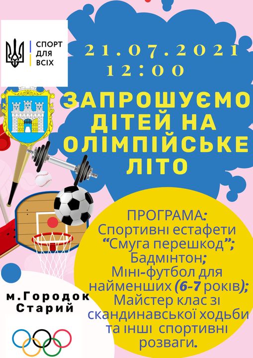 Львівський обласний центр фізичного здоров'я населення "Спорт для всіх" спільно з Городоцькою міською радою запрошує дітей Городоцької громади на “Олімпійське літо”.