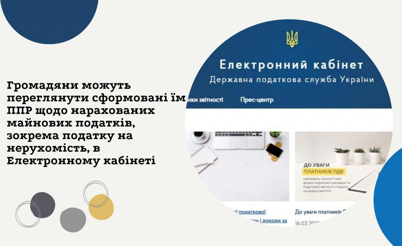 Звертаємо увагу, що ФО, використовуючи кваліфікований електронний підпис (КЕП), мають можливість переглянути сформовані податкові повідомлення-рішення щодо сум нарахованих їм податкових зобов’язань з податку на нерухоме майно, відмінне від земельної ділянки, в меню «Електронний кабінет для громадян» приватної частини Електронного кабінету, вхід до якого здійснюється за адресою: http://cabinet.tax.gov.ua, а також через офіційний вебпортал ДПС.