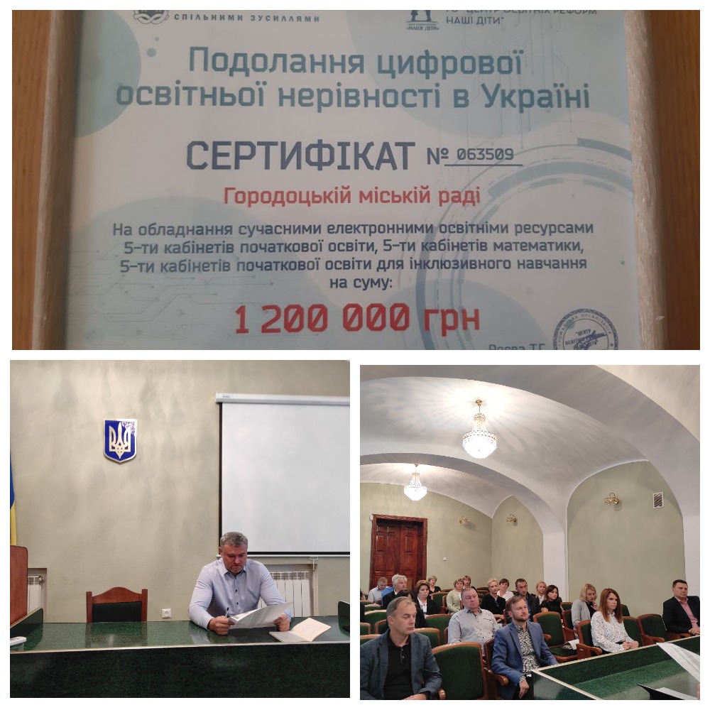 - ще одна маленька перемога - Городоцька громада отримала сертифікат на обладнання сучасними електронними освітніми ресурсами 5-ти кабінетів початкової освіти, 5-ти кабінетів математики, 5-ти кабінетів початкової освіти для інклюзивного навчання на суму: 1 мільйон 200 тисяч гривень (Ременяк В.В.);