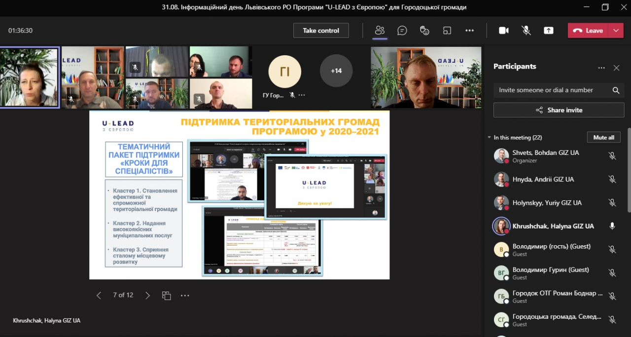 Днями для працівників Городоцької міської ради проведено онлайн-зустріч, в ході якої представлено основні напрямки діяльності Програми «U-LEAD з Європою» та результати роботи Львівського регіонального офісу.
