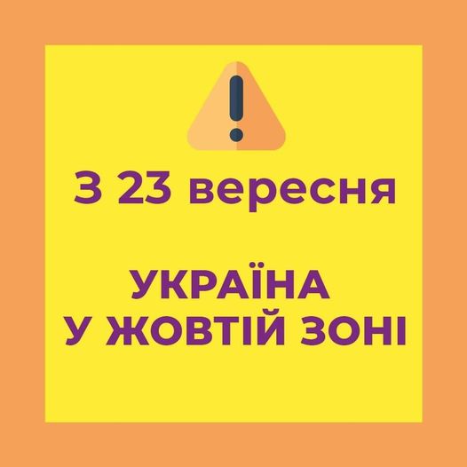 У зв'язку з поширенням коронавірусної інфекції, з 00:00 години 23 вересня по всій території Україні буде запроваджений жовтий рівень епідеміологічної небезпеки.