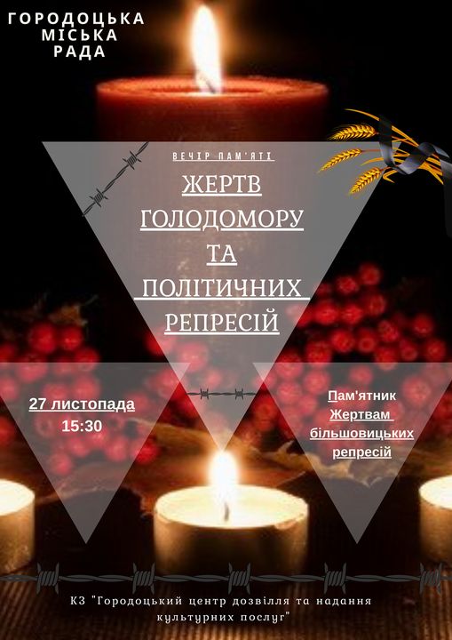 27 листопада, о 15:30 год, біля міського пам'ятника Жертв більшовицьких репресій відбудеться вшанування пам'яті жертв голодомору та політичних репресій.
