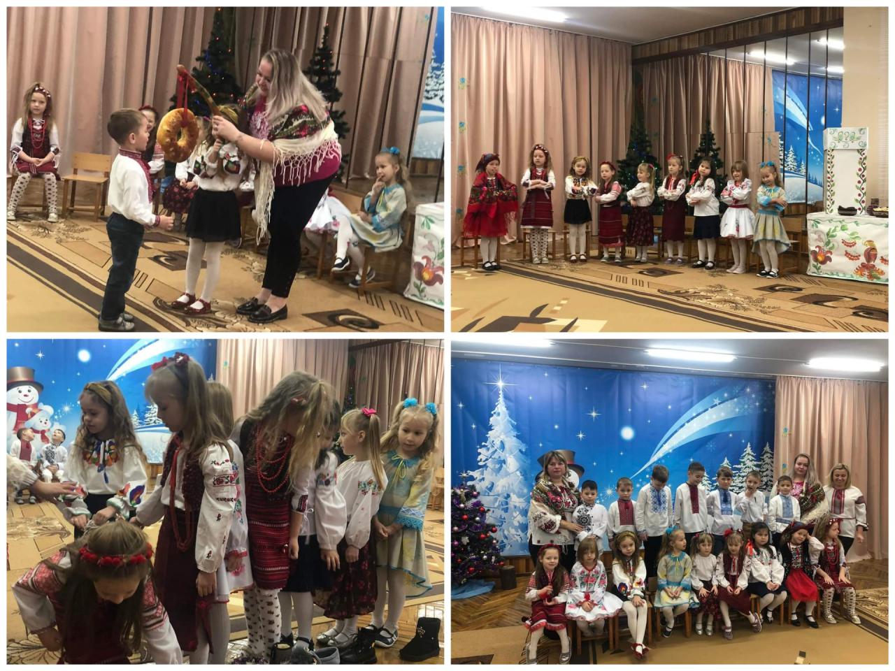 Старша група «Яблунька» під керівництвом вихователів Юлії Юсів та Тетяни Войтанович, музичного керівника Лобові Цуньовської підготувала дійство, в якому вихованці співали, декламували жартівливі вірші, танцювали і куштували вареники та калиту.