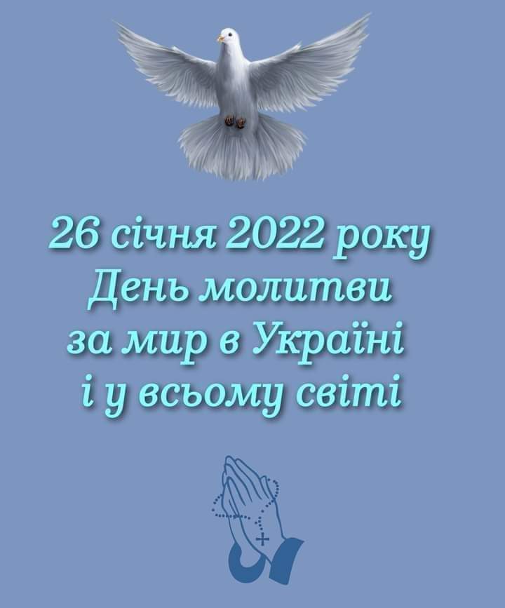 26 січня 2022 року Святіший Отець Франциск проголосив #Світовим_Днем_молитви_за_мир_в_Україні.