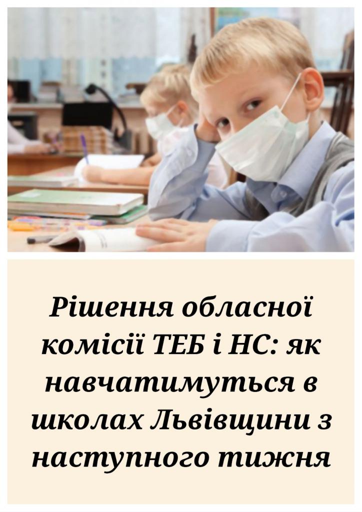 За рішенням обласної комісії ТЕБ і НС до раніше встановлених карантинних обмежень, які діють на території Львівщини з 31 січня внесли зміни. Зокрема, це стосується організації процесу навчання в закладах освіти.