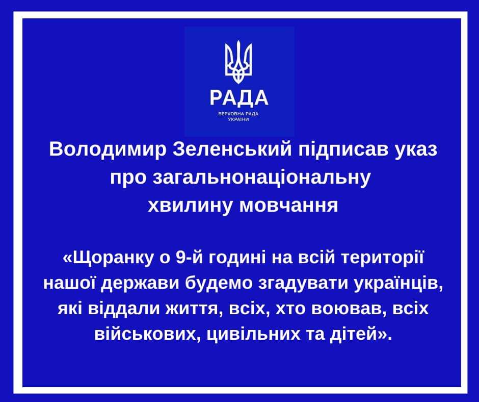 Щоранку о 9:00 год хвилиною мовчання вшануємо пам'ять загиблих