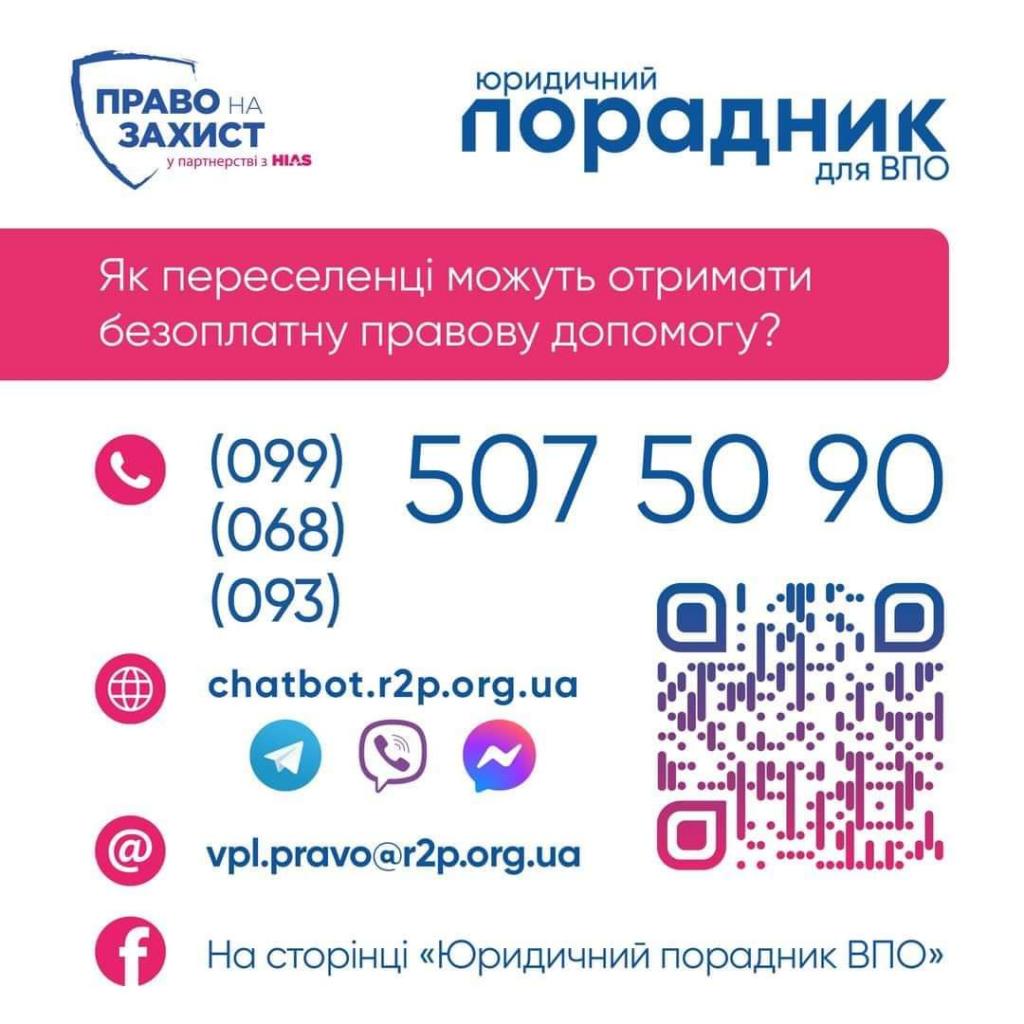 Завітайте на сторінку «Юридичний порадник для ВПО» у Facebook: https://www.facebook.com/IDP.legal.aid/.