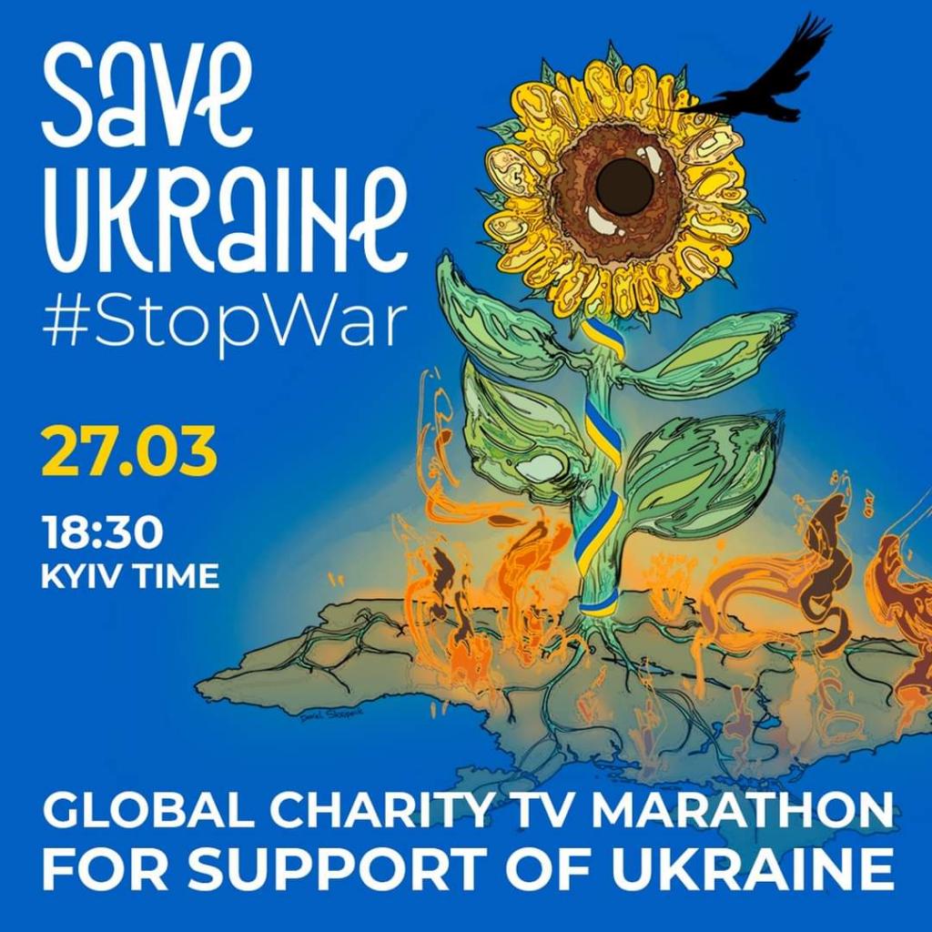У неділю, 27 березня, о 17:30 за центрально-європейським часом з Варшави (18:30 за Києвом) на базі польського телеканалу TVP розпочнеться міжнародний благодійний концерт-марафон на підтримку України Save Ukraine – #StopWar.