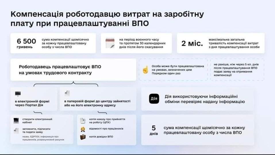 Щомісячна компенсація становить 6500 гривень за кожну працевлаштовану особу.