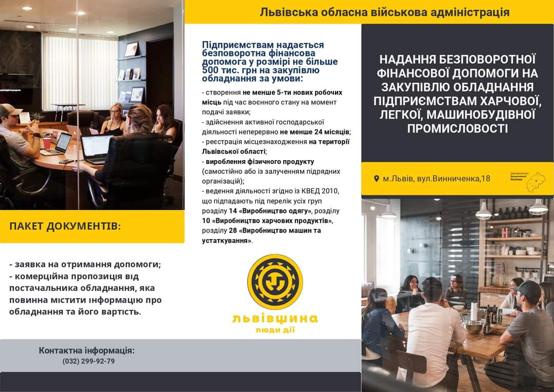 Підтримка проводиться у межах реалізації Програми підтримки бізнесу у Львівській області на період воєнного стану