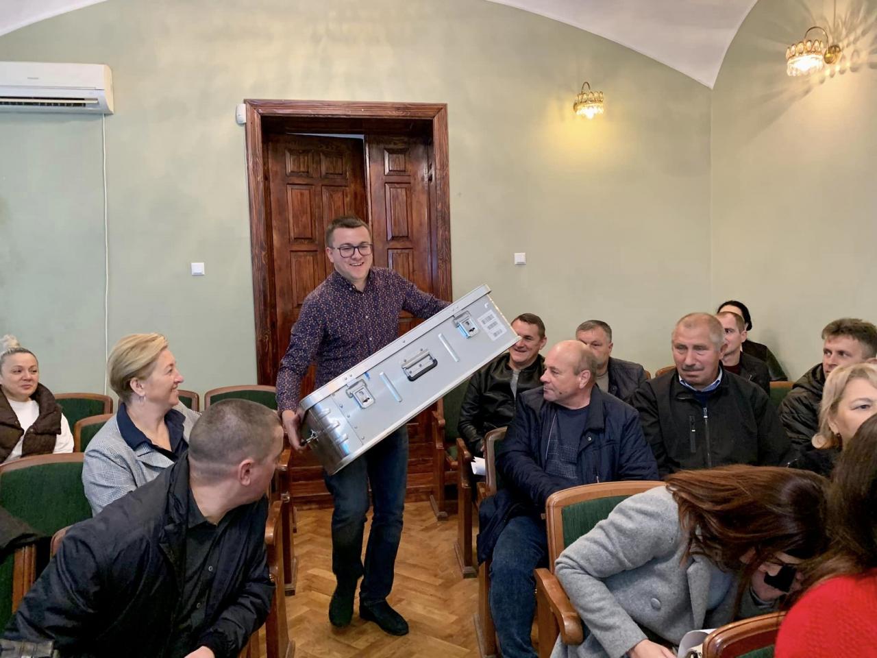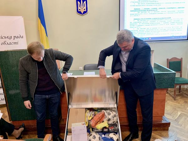 Для шкіл Городоцька територіальна громада гість передав бокси з різноманітним спортивним інвентарем.