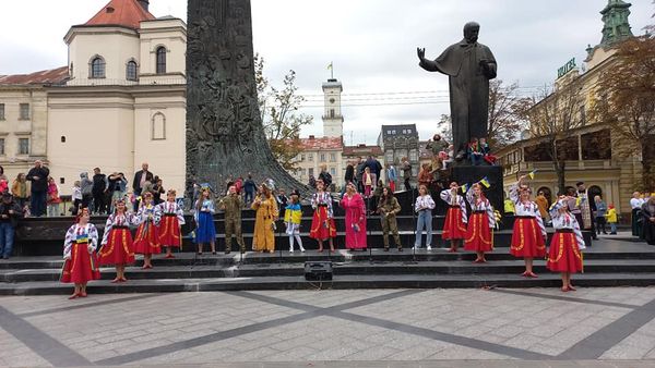 Благодійний концерт за творчою участю мистецьких колективів Городоцької та Великолюбінської громад 25 вересня зібрав біля пам'ятника Т.Шевченку у Львові чисельну публіку!