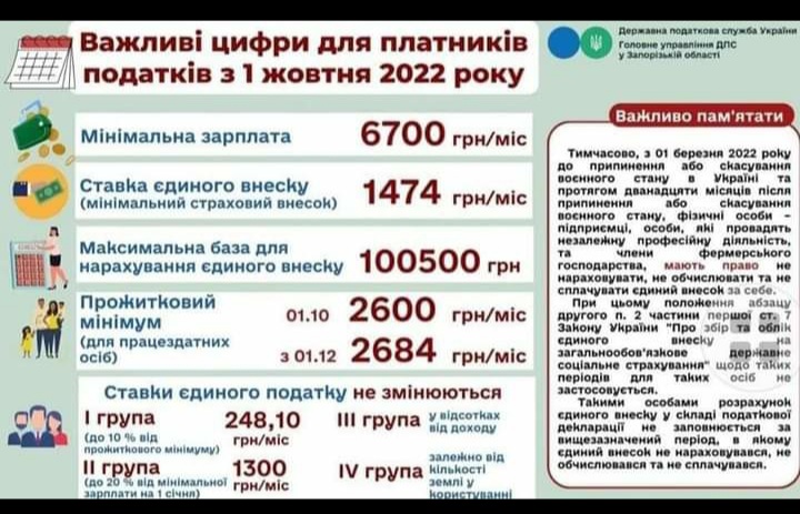 Важливі цифри для платників податків з 1 жовтня 2022 року!