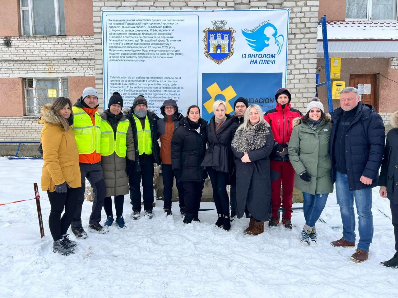 Іспанські друзі, які фінансують проєкт (представники Фундації медсестер Навари), ознайомилися із результатом роботи на одному з початкових етапів будівельного проєкту – ремонт даху. Спільно з партнерами спланували й подальші кроки, вінцем яких має стати оселя для дітей, що втратили дім через війну.