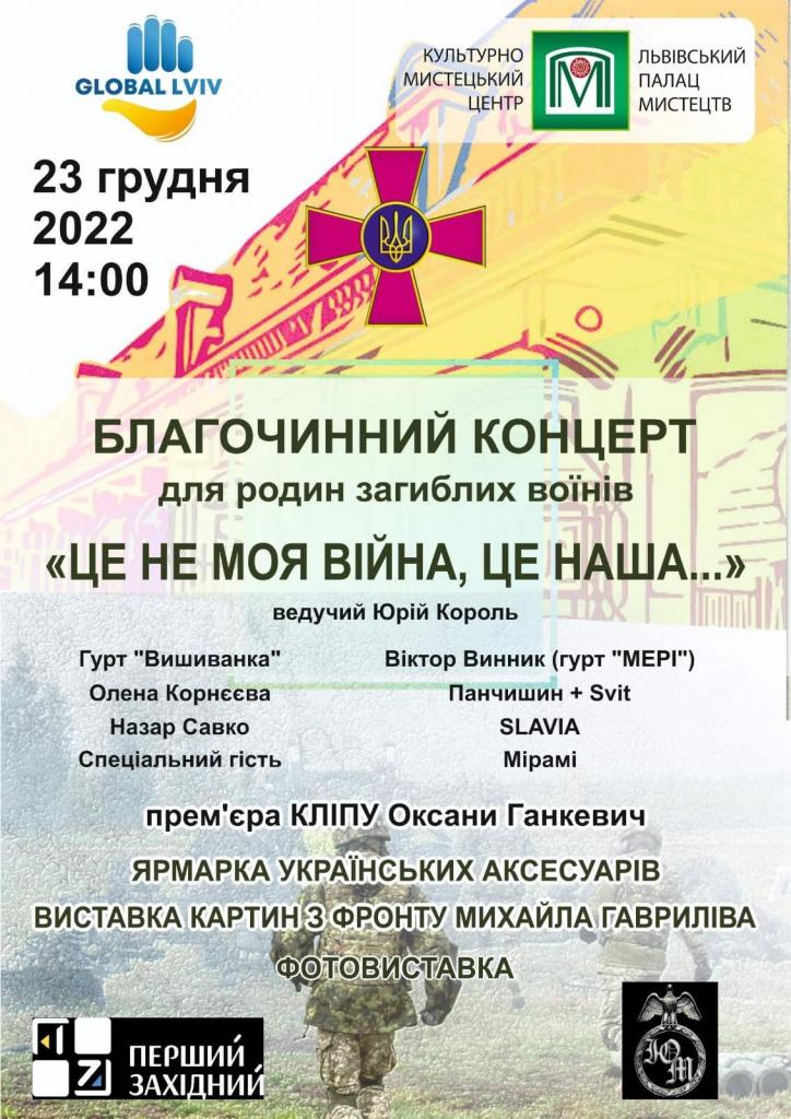 Члени сімей загиблих Героїв запрошуються на благодійний концерт «Це не моя війна, це наша…»