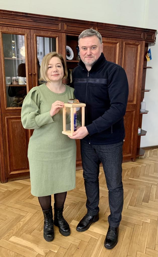 З приємністю передала голові Городоцька територіальна громада Володимир Ременяк естафету миру, світла й добра від наших партнерів землячка Юлія Віткова, координаторка зі справ біженців України.